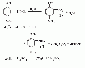 1.以對酚為原料,以硝酸、配制一定濃度的混酸進行硝化,反應畢,分離廢酸,經洗滌蒸餾后以硫化堿還原,后經酸析、結晶、干燥得成品。